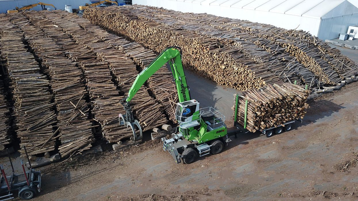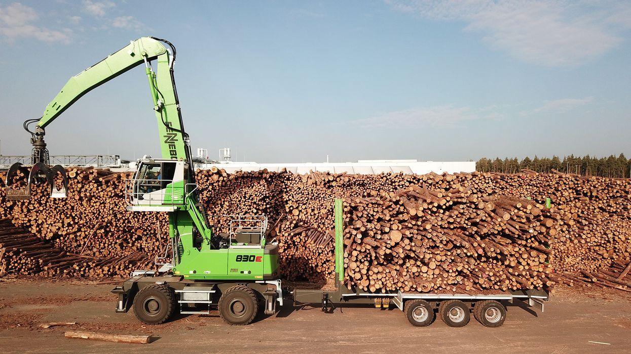 A solução ideal para trabalhos difíceis de manuseio de madeira: O SENNEBOGEN 830 E Mobile Trailer representa ciclos de carregamento rápidos e uma construção robusta. Graças a um chassi reforçado e tração nas quatro rodas, ele é bem adequado para operação de reboque pesado em terrenos acidentados.