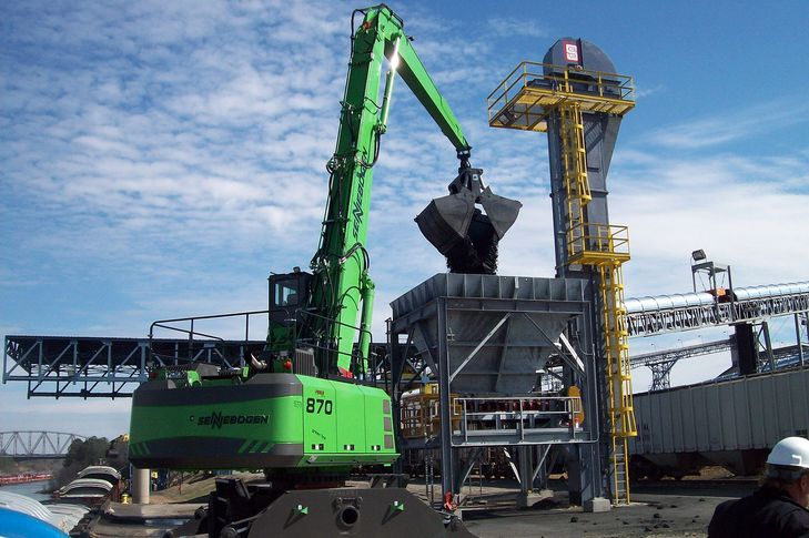 Graças às configurações personalizadas, em particular o SENNEBOGEN port stick, e a ampla gama de opções de material rodante, o 870 E Hybrid é uma verdadeira potência para as tarefas flexíveis e desafiadoras de manuseio de materiais em um porto. O sistema de recuperação de energia SENNEBOGEN Green Hybrid reduz a potência do motor necessária e economiza até 30% de energia!