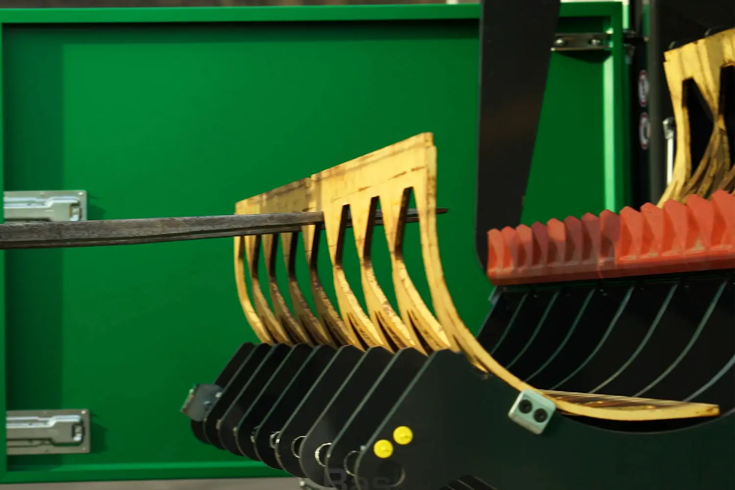 Na câmara de trituração extragrande, dois tambores dentados em contra-rotação de 2,8 m garantem uma alimentação positiva. Desde galhos e estacas volumosos até porta-enxertos de qualquer tamanho e madeira usada contaminada com contrários, ele tritura tudo até um tamanho de partícula definido.