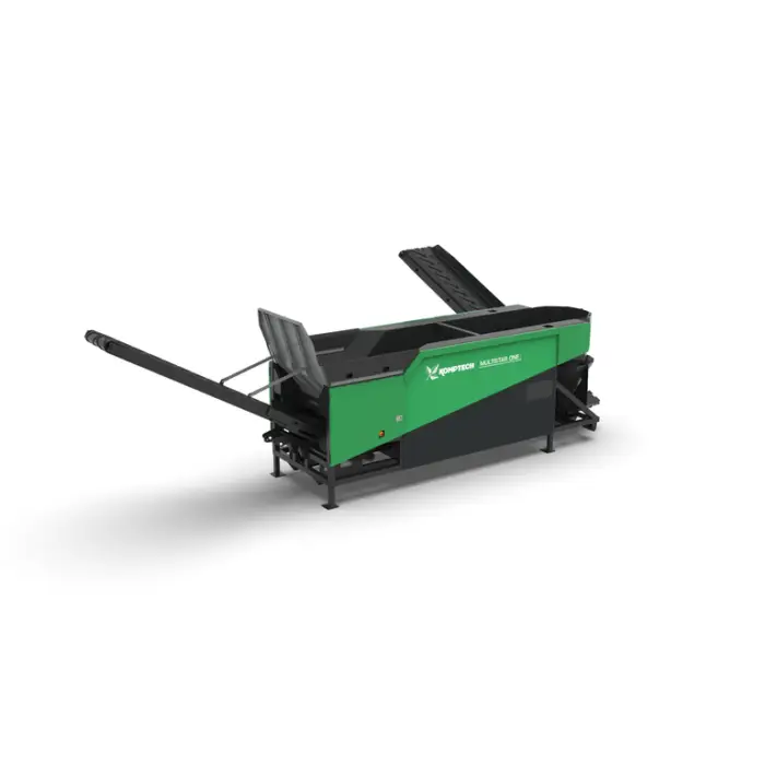 O Multistar One torna o processamento de resíduos de madeira e biomassa altamente eficiente. Um Crambo upstream lida com a trituração, e o Um então se encarrega de separar uma fração útil definida enquanto retorna os comprimentos excessivos ao triturador. Com um funil de alimentação para a transferência precisa de material para a plataforma de peneira generosamente dimensionada, um transportador de descarga com altura de cone de 4 m e um transportador de retorno que pode girar em 220 °, o One está pronto para entregar até 200 m³