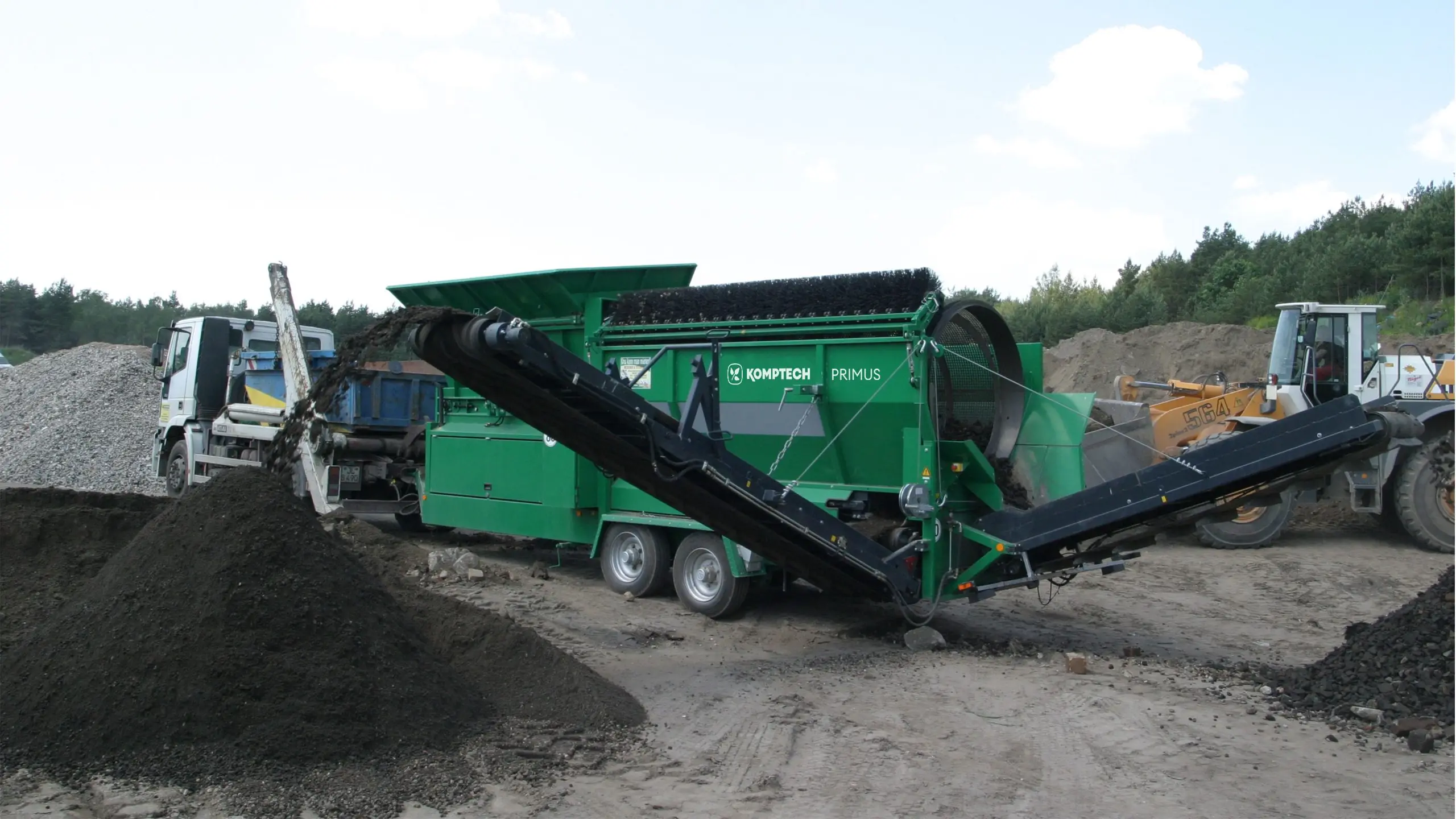 O Primus é uma peneira de tambor de nível de entrada. Projetado como um reboque de eixo central tandem, o Primus tem 16 m² de área de peneiramento efetiva e oferece um comprimento de peneira capaz de lidar com grandes trabalhos. Componentes sólidos e resistentes, como o acionamento do tambor hidráulico por corrente de rolos e o motor a diesel de baixo consumo, proporcionam uma ótima relação preço-desempenho. Estão disponíveis opções que permitem aos usuários configurar a máquina para seus requisitos específicos.