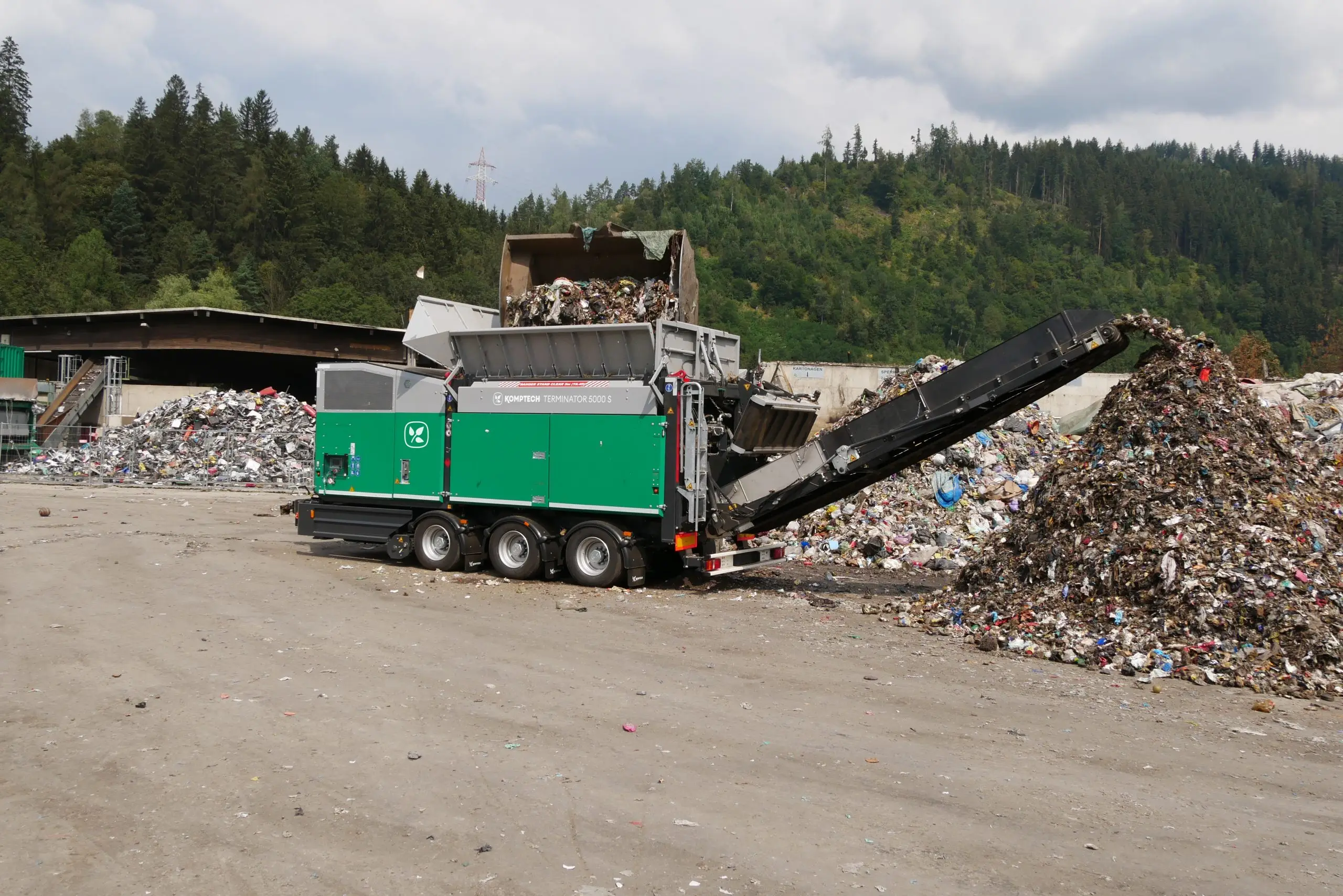 O Terminator é um dos trituradores de eixo único de maior sucesso para todos os tipos de resíduos. A nova série e-mobile adiciona versões semimóveis elétricas à linha, apresentando motores elétricos livres de manutenção em vez de motores a diesel. O conceito combina o design compacto e a flexibilidade de uma máquina móvel com a eficiência energética de uma máquina estacionária.