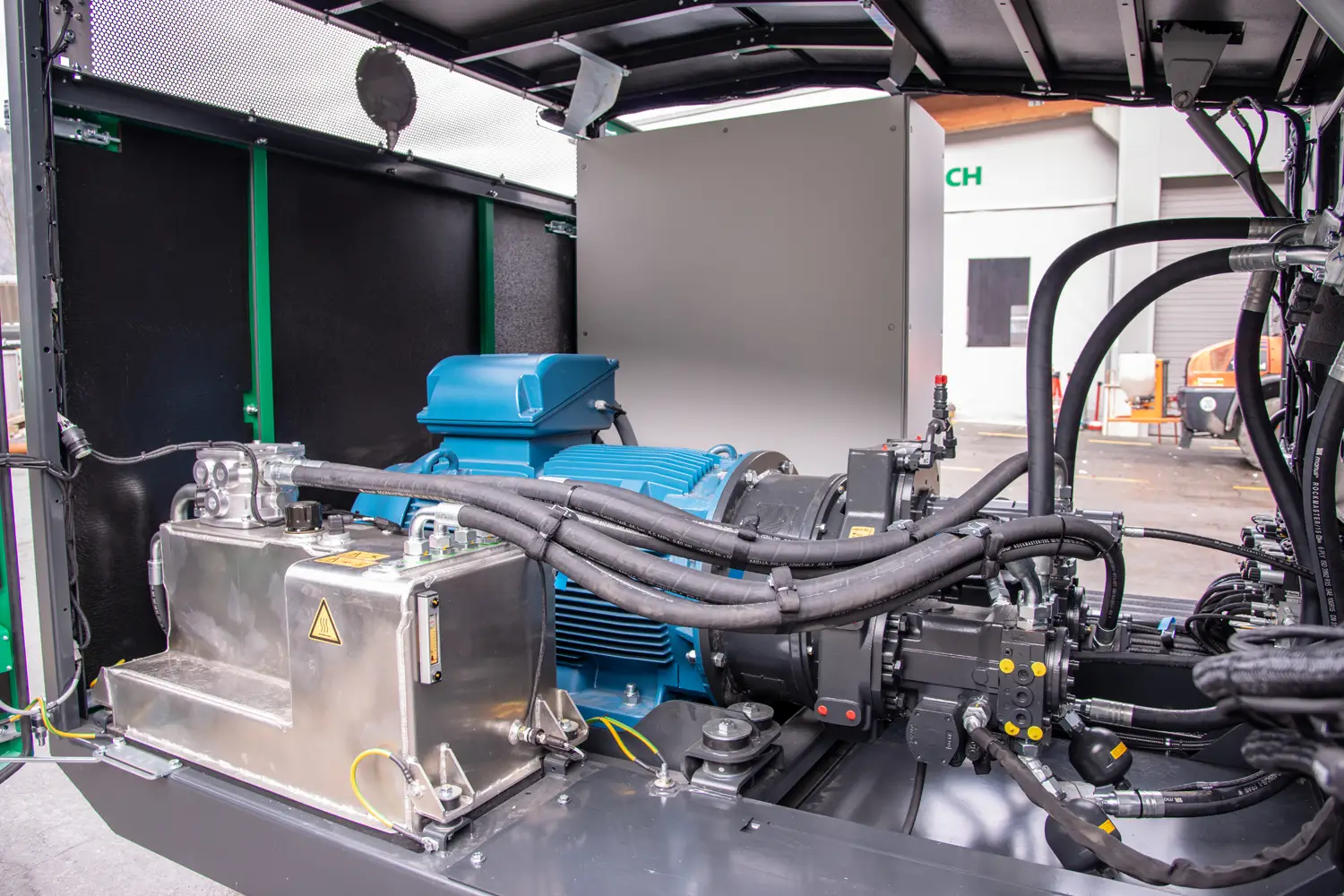 O motor elétrico em vez do motor diesel oferece uma vantagem significativa nos custos de energia com sua alta eficiência. Com um rendimento comparável, é possível poupar 70% dos custos de energia em comparação com o gasóleo.