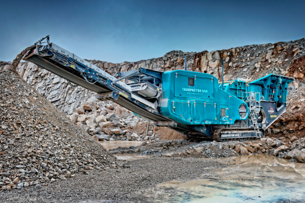 O impactador de eixo horizontal Powerscreen® Trakpactor 550 foi projetado para processar materiais primários e secundários macios a semiduros, como rochas naturais e materiais derivados da construção, como asfalto, reciclagem e resíduos de demolição. O material é alimentado na grande tremonha de alimentação, comum tanto nas versões com alimentador vibratório de grelha quanto com pré-peneiramento ativo. Ambas possuem um desvio de britador selecionável e uma correia de descarga de finos opcional. O sensor de carga garante que a ampla abertura de entrada do britador receba uma alimentação contínua de material pré-peneirado, evitando desgaste desnecessário do britador.